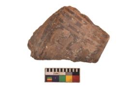 | Description / विवरण | Specimen of black on red ware with black decorative Lines and dots geometric painting. |