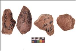 | Description / विवरण | Specimen of flake tools with prominent flaking marks. They are made up of a short flakes with sides trimmed. |