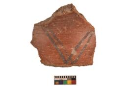 | Description / विवरण | Specimen of black on red ware with black decorative Intersecting curves geometric painting. |