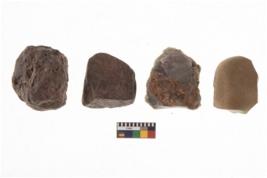 | Description / विवरण | There are n 4 utilized flakes. There are multi directional irregular scar pattern on both dorsal and ventral face of the flakes. two are sharp edges, and two are blunted edges at one end. |