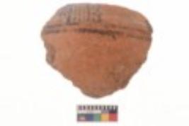| Description / विवरण | Specimen of black on red ware with black decorative Vertical lines intersecting horizontal lines geometric painting. |