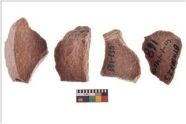 | Description / विवरण | There are n 4 utilized flake cores. There are multidirectional irregular scar pattern on both dorsal and ventral face of the flake cores. One has sharp edges and three have blunted edges. |