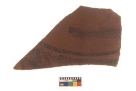 | Description / विवरण | Specimen of Potsherd black on red painted pottery. It is fine fabric in sharp contrast with painted design are executed in black pigment. |