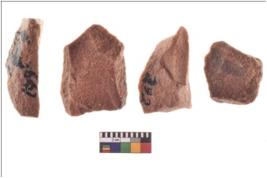 | Description / विवरण | There are n 4 utilized flake cores. There are multidirectional irregular scar pattern on both dorsal and ventral face of the flake cores. One has sharp edges and three have blunted edges. |