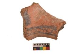 | Description / विवरण | Specimen of black on red ware with black decorative Lattice design geometric painting. |
