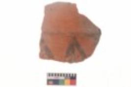 | Description / विवरण | Specimen of black on red ware with black decorative Lattice leaf geometric painting. |