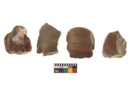 | Description / विवरण | There are n 4 utilized flakes. There are multi directional irregular scar pattern on both dorsal and ventral face of the flakes. three have sharp edges, and one has rounded edge at one end. |