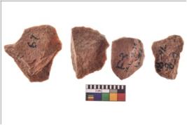 | Description / विवरण | There are n 4 utilized flake cores. There are multidirectional irregular scar pattern on both dorsal and ventral face of the flake cores. One has sharp edges and three have blunted edges. |