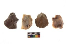 | Description / विवरण | There are n 4 utilized flakes. There are multi directional irregular scar pattern on both dorsal and ventral face of the flakes; two have chalcedony, and two have chert, two have sharp edges, and two have tapering edges, at one end. |