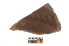 | Description / विवरण | Specimen of a Potsherd with black decorative geometric painting on it.It is set of two zigzag bands. |