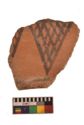 | Description / विवरण | Specimen of black on red ware with black decorative Lattice geometric painting. |