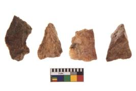 | Description / विवरण | There are n 4 utilized flakes. There are multi directional irregular scar pattern on both dorsal and ventral face of the flakes. two have tapering at one end and two have sharp edges. |