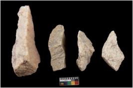 | Description / विवरण | There are n 4 flakes; there are multidirectional irregular scar pattern on them; made of short flakes and all four have tapering edges. |