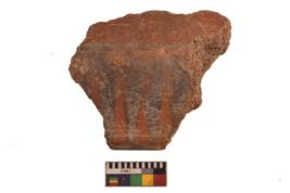 | Description / विवरण | Specimen of black on red ware with black decorative Broad vertical lines geometric painting. |