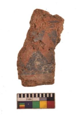 | Description / विवरण | Specimen of black on red ware with black decorative Triangles geometric painting. |
