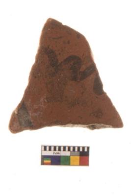 | Description / विवरण | Specimen of Potsherd black on red painted pottery. It is fine fabric in sharp contrast with painted design are executed in black pigment. |