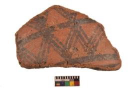 | Description / विवरण | Specimen of black on red ware with black decorative Group of triangles geometric painting. |