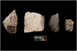 | Description / विवरण | Specimen of a cores with several broad fluted marks and some of them are tapering at one end. |