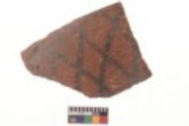 | Description / विवरण | Specimen of black on red ware with black decorative Diamond lattice pattern geometric painting. |