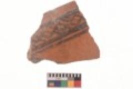| Description / विवरण | Specimen of black on red ware with black decorative Lattice design geometric painting. |