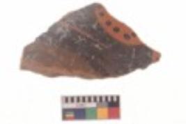 | Description / विवरण | Specimen of black on red ware with black decorative Thick leaf like design with dots geometric and nature painting. |