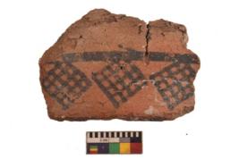| Description / विवरण | Specimen of black on red ware with black decorative Octahedron like lattice design geometric painting. |