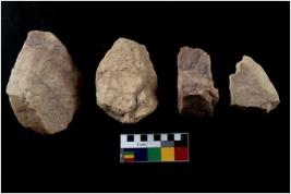 | Description / विवरण | Specimen of a cores with several broad fluted marks, the reverse bulb and platform can be seen. |