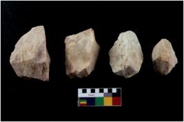 | Description / विवरण | Specimen of a cores with several broad fluted marks and some of them are tapering at one end. |