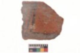 | Description / विवरण | Specimen of black on red ware with black decorative Vertical and horizontal lines geometric painting. |