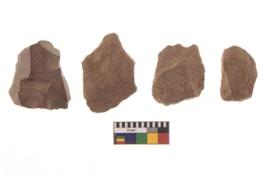 | Description / विवरण | There are n 4 utilized flakes. There are multi directional irregular scar pattern on both dorsal and ventral face of the flakes. two have sharp edges, and two have blunted edges, at one end. |