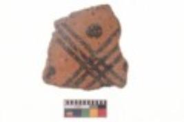 | Description / विवरण | Specimen of black on red ware with black decorative Lines intersecting eachother and dots geometric painting. |