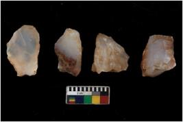 | Description / विवरण | There are n 4 utilized flake cores. There are multi directional irregular scar pattern on them. All of them have flat base. Two have blunted edges and two have round edges. |