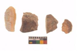 | Description / विवरण | There are n 4 flakes tool; there are flakes tool with prominent flaking marks. It made up of a large flakes with sides trimmed. |