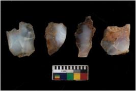 | Description / विवरण | There are n 4 utilized flake cores. There are multi directional irregular scar pattern on them. One is tapering at one end and three have blunted edges. |