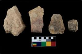 | Description / विवरण | There are n 4 flakes tool; there are multidirectional irregular scar pattern on them; made of short flakes and all four have tapering edges. |