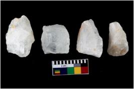 | Description / विवरण | There are n 4 flake cores. All of them are fully fluted flake cores without any trace of crested ridge flakes. |