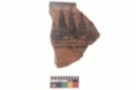 | Description / विवरण | Specimen of black on red ware with black decorative Group of elongated vertical triangles geometric painting. |