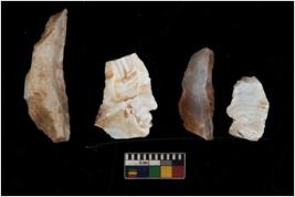 | Description / विवरण | There are n 4 utilized flake cores. There are multi directional irregular scar pattern on them. Two have sharp edge and two are tapering at one end. |