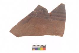 | Description / विवरण | Specimen of black on red ware with black decorative Parallel horizontal lines geometric painting. |