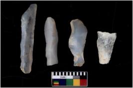 | Description / विवरण | There are n 4 Flake tool; There are multidirectional irregular scar pattern on them. few have blunt edges, Some of them are tapering at one end. |