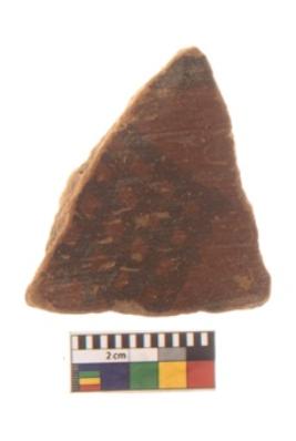 | Description / विवरण | Specimen of Potsherd with black decorative geometric diamond set broad horizontal bands painting. |