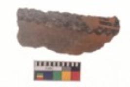 | Description / विवरण | Specimen of black on red ware with black decorative Joint wavy and horizontal lines geometric painting. |
