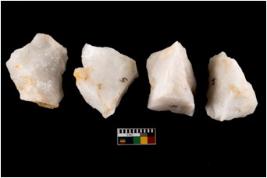 | Description / विवरण | Specimen of fluted cores having several broad fluted marks indicating the detached blades from it. |