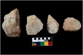 | Description / विवरण | Specimen of a cores with several broad fluted marks and some of them are tapering at one end. |