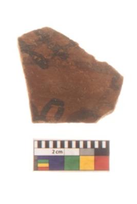 | Description / विवरण | Specimen of Potsherd black on red painted pottery. It is fine fabric in sharp contrast with painted design are executed in black pigment. |