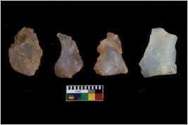 | Description / विवरण | There are n 4 utilized flake cores. There are multi directional irregular scar pattern on them. One has sharp edge and three have blunted edges. |