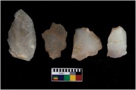| Description / विवरण | There are n 4 utilized flake cores. There are multi directional irregular scar pattern on them. One is tapering at one end and three have blunted edges. |