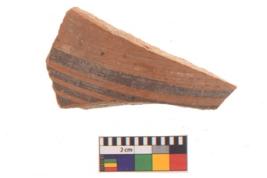 | Description / विवरण | Specimen of black on red ware with black decorative Horizontal parallel lines geometric painting. |