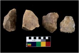 | Description / विवरण | Specimen of a cores with several broad fluted marks and some of them are tapering at one end. |