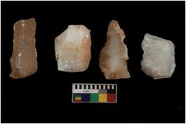 | Description / विवरण | There are n 4 utilized flake cores. There are multi directional irregular scar pattern on them. Two are tapering at one end and two have blunted edges. |